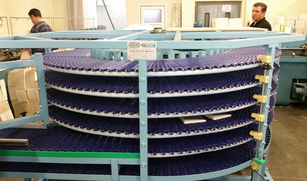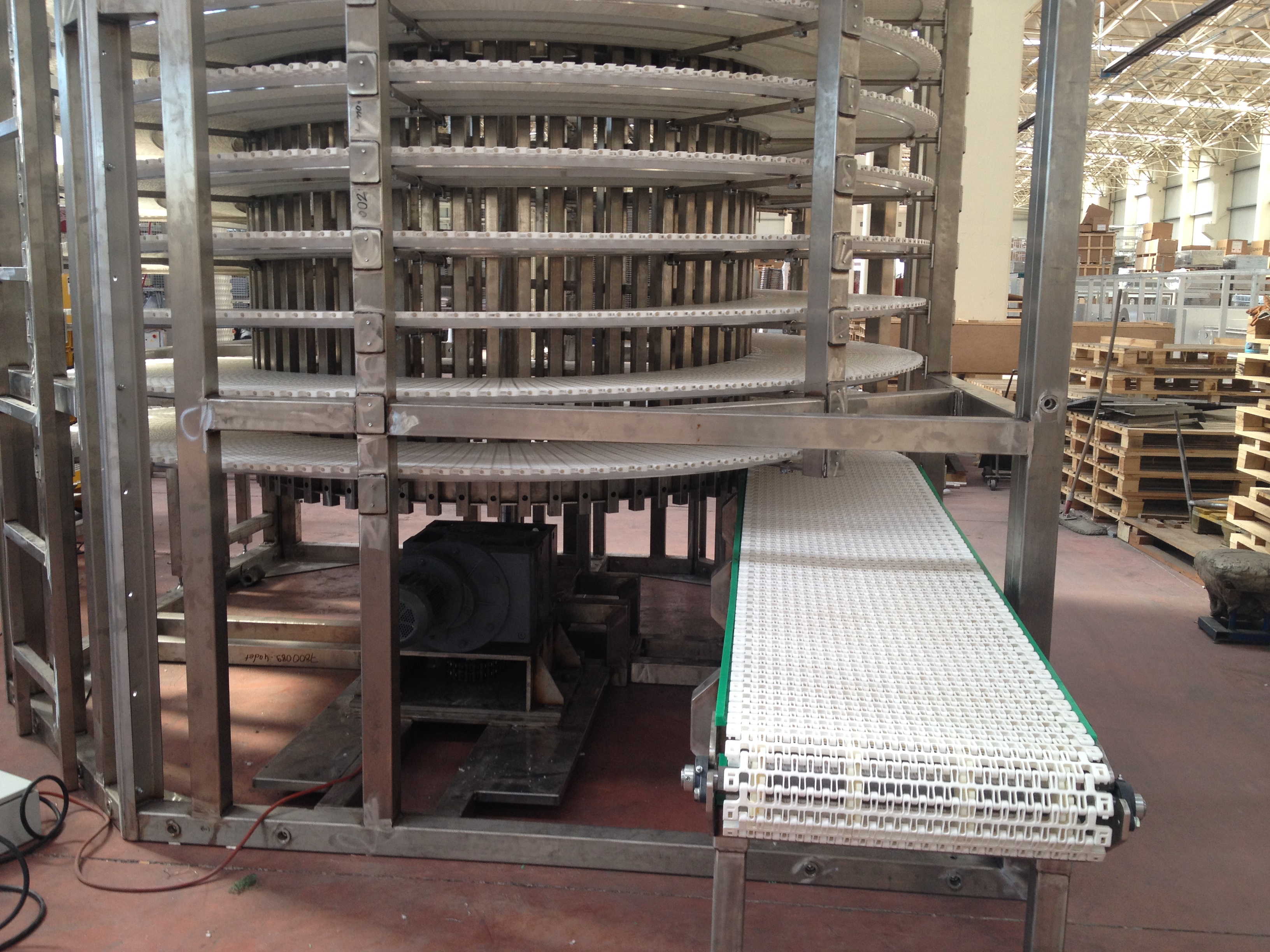.JPG) Spiral Konveyörler, Spiral Dondurucu, IQF sistemleri Spiral Konveyörler kullanım amacı itibari ile bekleme, dinlendirme, ısıtma yada soğutma hatlarında yaygın olarak kullanılmaktadır. Gıda sektöründe özellikle et sektöründe Spiral Konveyörler şoklama amaçlı kullanılmaktadır.