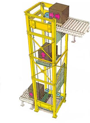 Dikey konveyörler dar alanda asansör mantığı ile katlar arası yada farklı kottaki yükseklikler arasında ürün taşımada kullanılır. Dikey konveyör sisteminin klasik asansör sisteminden farkı ve artısı ile sürekli çevrim tamamlatabilmesi ve birden fazla taşıyıcı kullanılabilmesidir. Alt kademeden ard arda yüklenen ürünler sistemin yatayda ürünü alıp dikeyde ilerleyen paletler sayesinde ürünü yukarı çıkartır. Yukarıya çıkan paletler karşı yönde ilerleyerek sona gediğinde kıvrılarak aşağıya doğru dikey olarak iner. Bu çevrim sürekli tekrarlanmaktadır. O yüzden ürün taşımalarda hızlılık ve serilik sağlar. Sistem heriki yönde de ürün taşıyabilmektedir. Hem indirme hemde çıkarma olarak Aksi halde klasik konveyör sistemleri yapmaya çalıştığımızda oldukça geniş bir alana ihtiyacımız olacaktır.. |