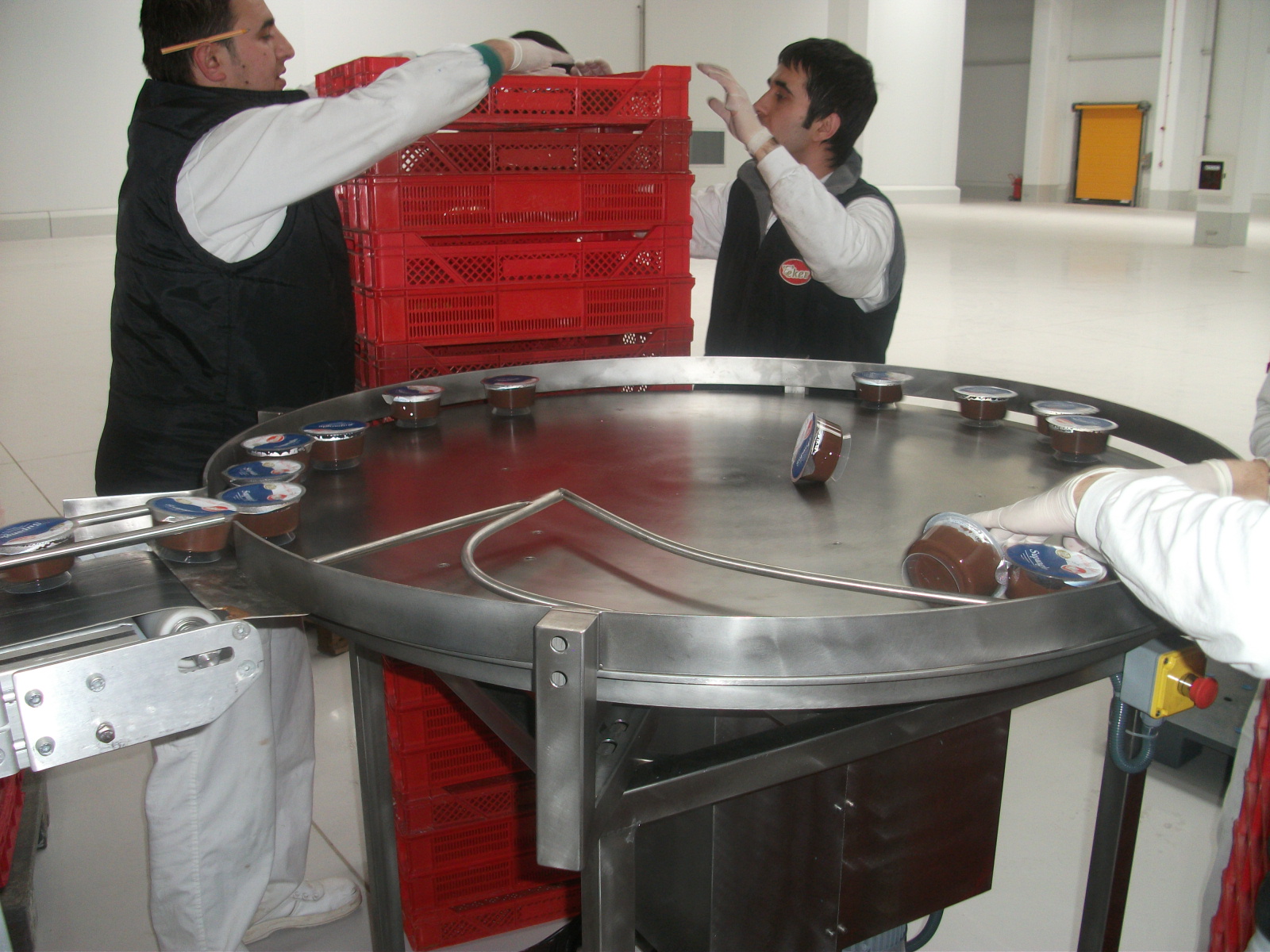 Döner tabla genelde hat sonlarına doğru kurularak ürün dinlendirmesi, biriktirilmesi, kutulaması, ürün seçimi ya da paketleme işleminin yapılması için kullanılmakladır. Döner tabla 0 derece ile 360 derece aralıklarında dönüş yapılarak ürünlerin taşınmasını gerçekleştirmektedir. Kullanım amacına göre birçok şekilde üretimi yapılmaktadır.